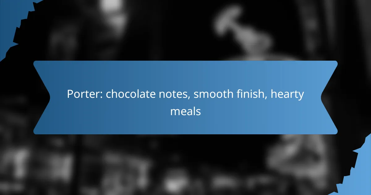 Choosing the right Porter for your meal involves understanding its flavor characteristics and how they complement various dishes. A well-selected Porter can enhance the dining experience by pairing its chocolate notes and smooth finish with hearty meals.
